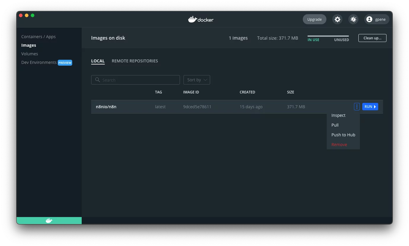 Как это работает: вы устанавливаете на свой компьютер программу Docker Desktop (она бесплатна для личного использования), запускаете терминал, вставляете одну команду — и n8n поднимается на вашей машине. После установки доступен тот же интерфейс, что и в облачной версии: список workflows, редактор сценариев, раздел с учетными данными, журнал выполнений и ошибок.