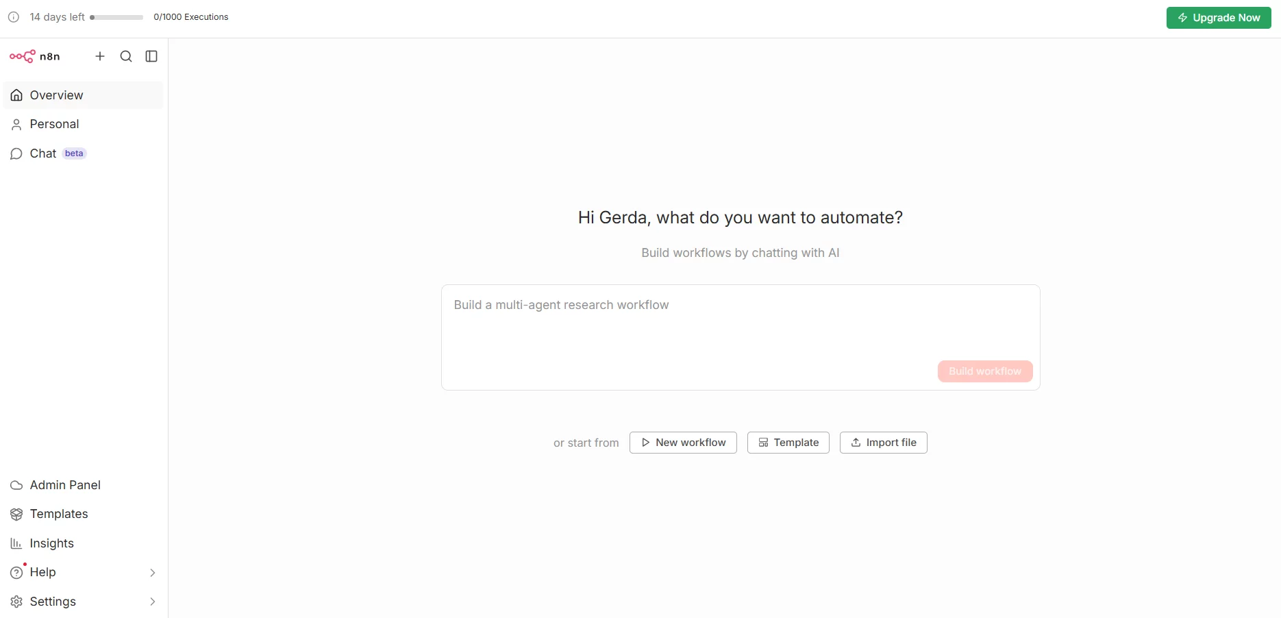 • Вариант А: зарегистрируйтесь в n8n Cloud (да, платно, но можно взять триал и попробовать).