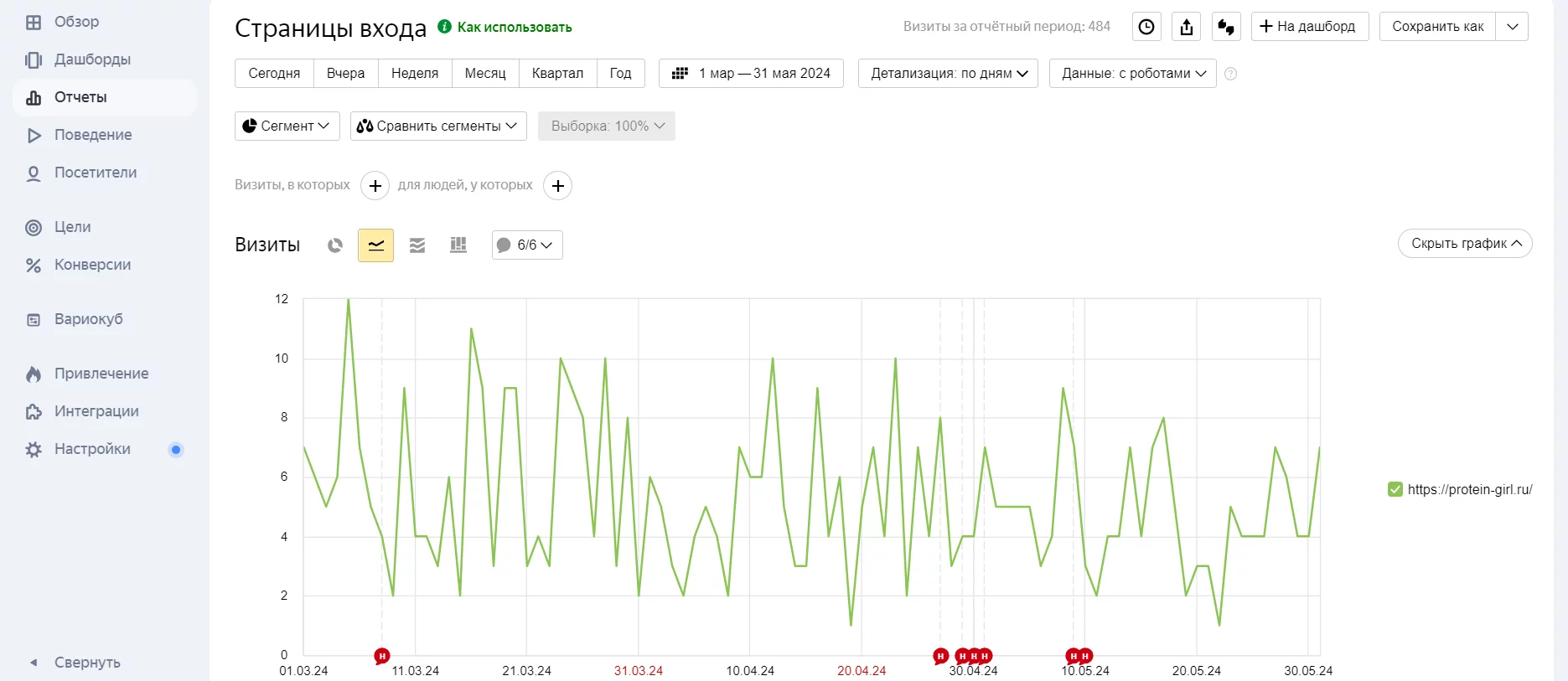 Если вы хотите посмотреть, как менялся показатель отказов на конкретной странице сайта, откройте отчет «Страницы входа».