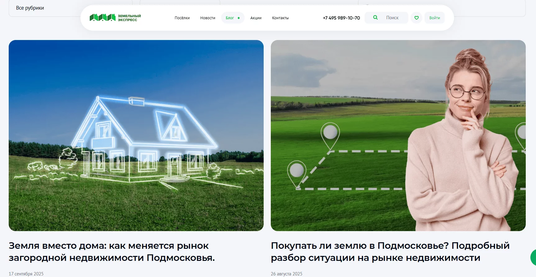 - Полезные материалы / Блог: страница, где вы демонстрируете экспертизу и отвечаете на вопросы аудитории.