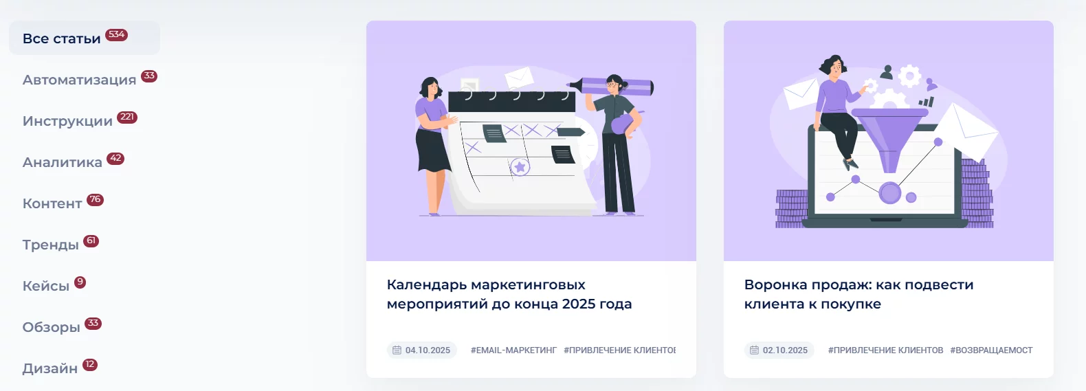 Блог маркетинговой платформы SendSay демонстрирует экспертизу через статьи по digital-маркетингу от экспертов рынка
