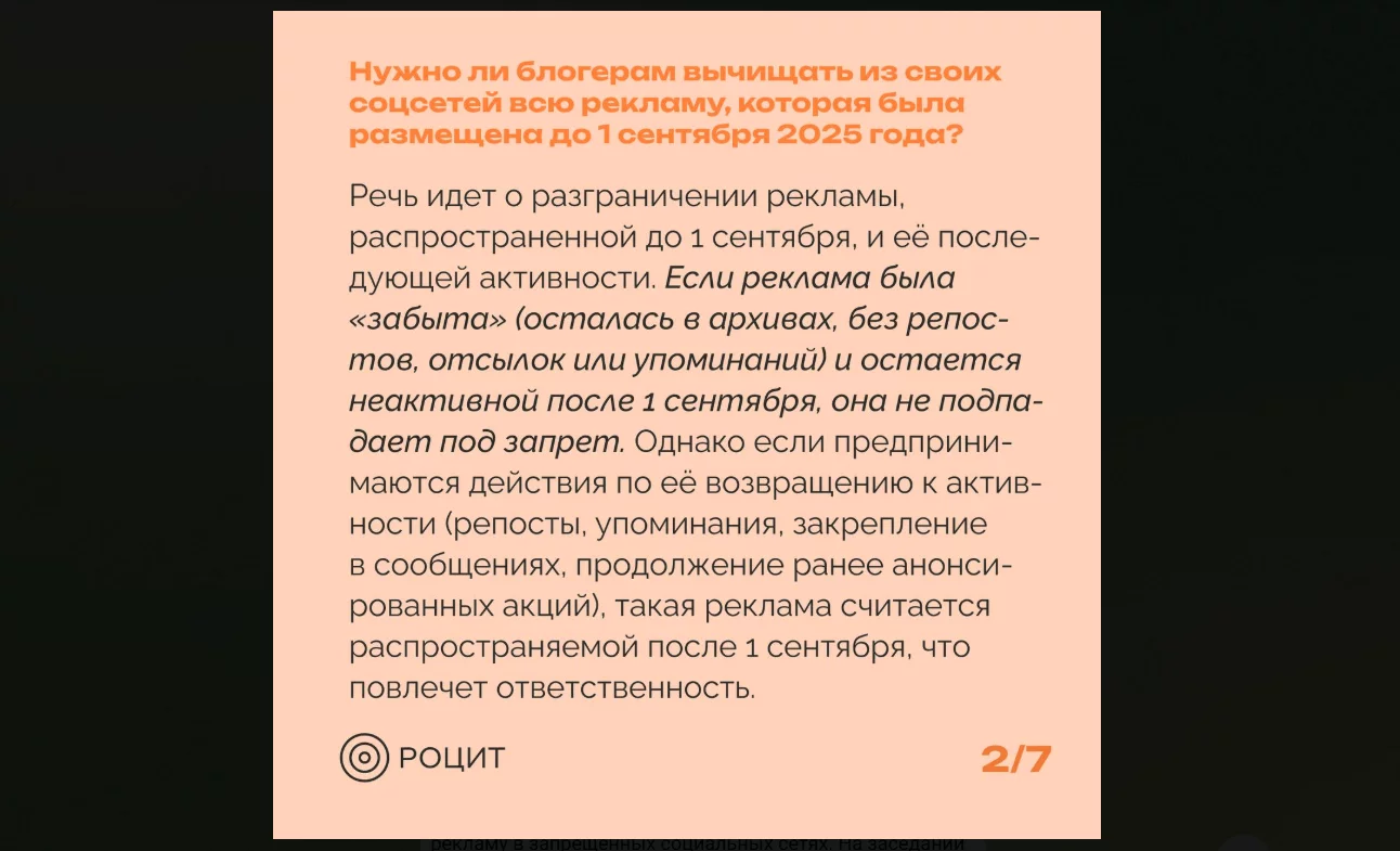 Удалять ранее опубликованную рекламу не требуется, но важно не актуализировать ее после 1 сентября 2025 года:
