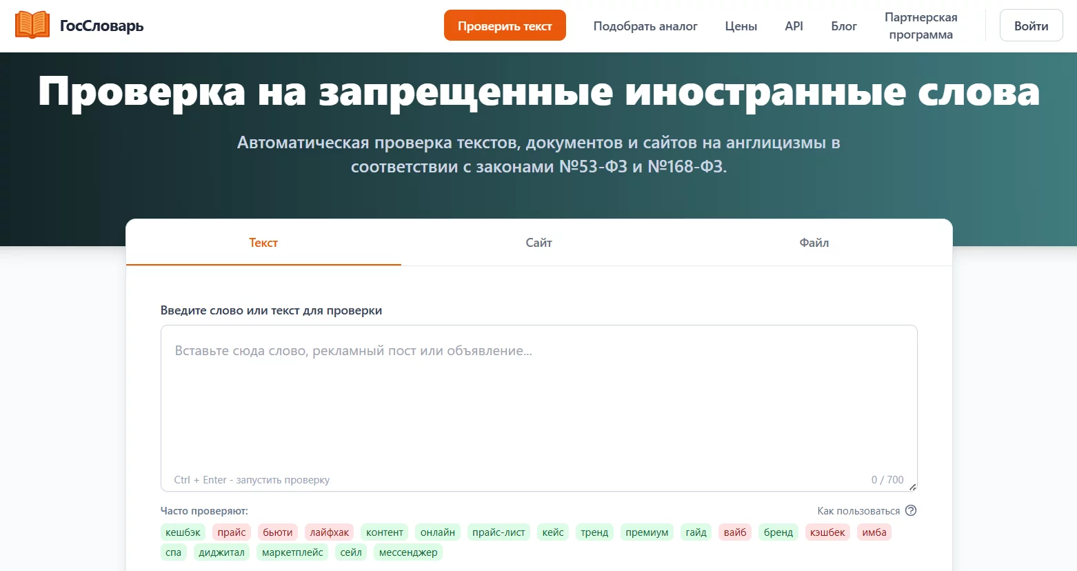 - «ГосСловарь» — сервис автоматической проверки текстов на наличие запрещенных иностранных слов.