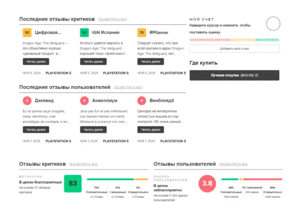 Взять тот же Dragon Age: The Veilguard — большинству людей хватило просто знания о том, что в этой игре есть квест с небинарным персонажем, чтобы держаться от игры на расстоянии. Как минимум, об этом говорит пользовательская оценка на Метакритике — и тот факт, что негативные отзывы удаляются, что еще сильнее возмущает народ и побуждает строчить их с упорством Энди Дюфрейна.