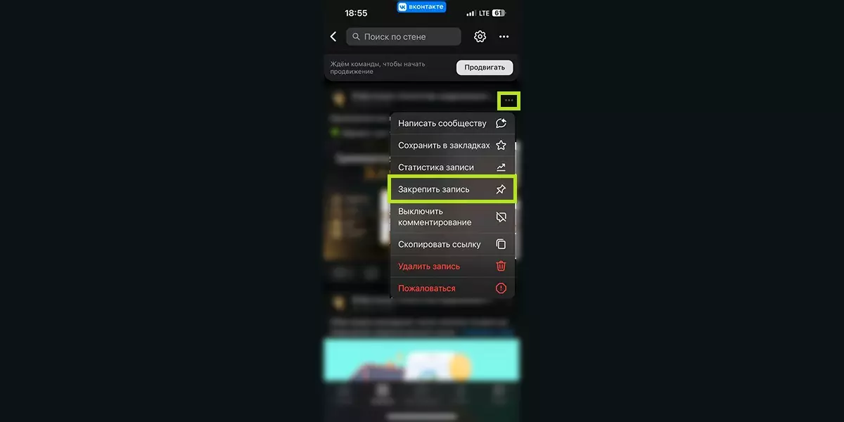 Как закрепить пост на странице ВК. Выберите нужный пост, нажмите на кнопку с тремя точками, а после нажмите на кнопку «Закрепить». Можно прикреплять только один пост.