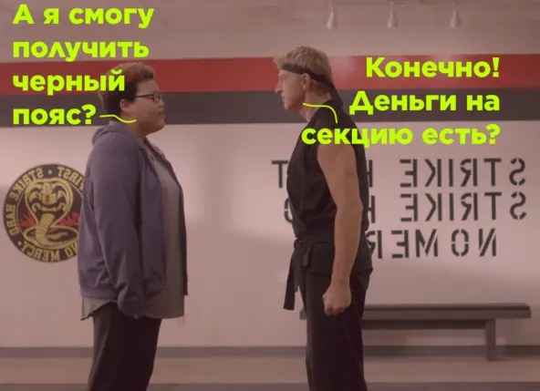 Поэтому давайте все суммируем и посмотрим уже попунктно — благодаря чему, помимо богатой дистрибуции, карате удалось не просто распространиться, но и закрепиться в массовой культуре?