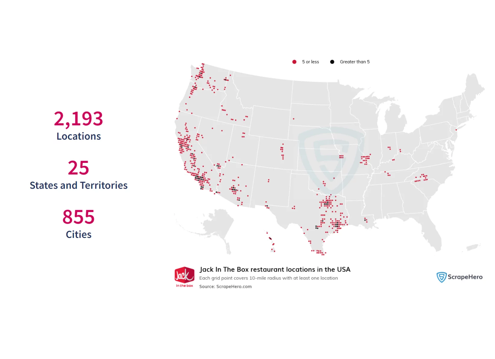 Наверняка вы, как и я, могли не единожды слышать о некоем культурном разделении США на западное и восточное побережье. Это проявляется много в чем, в том числе и в распространении франшиз. И Jack in the Box — это как раз франшиза с западного побережья Штатов. Смотрим карту: