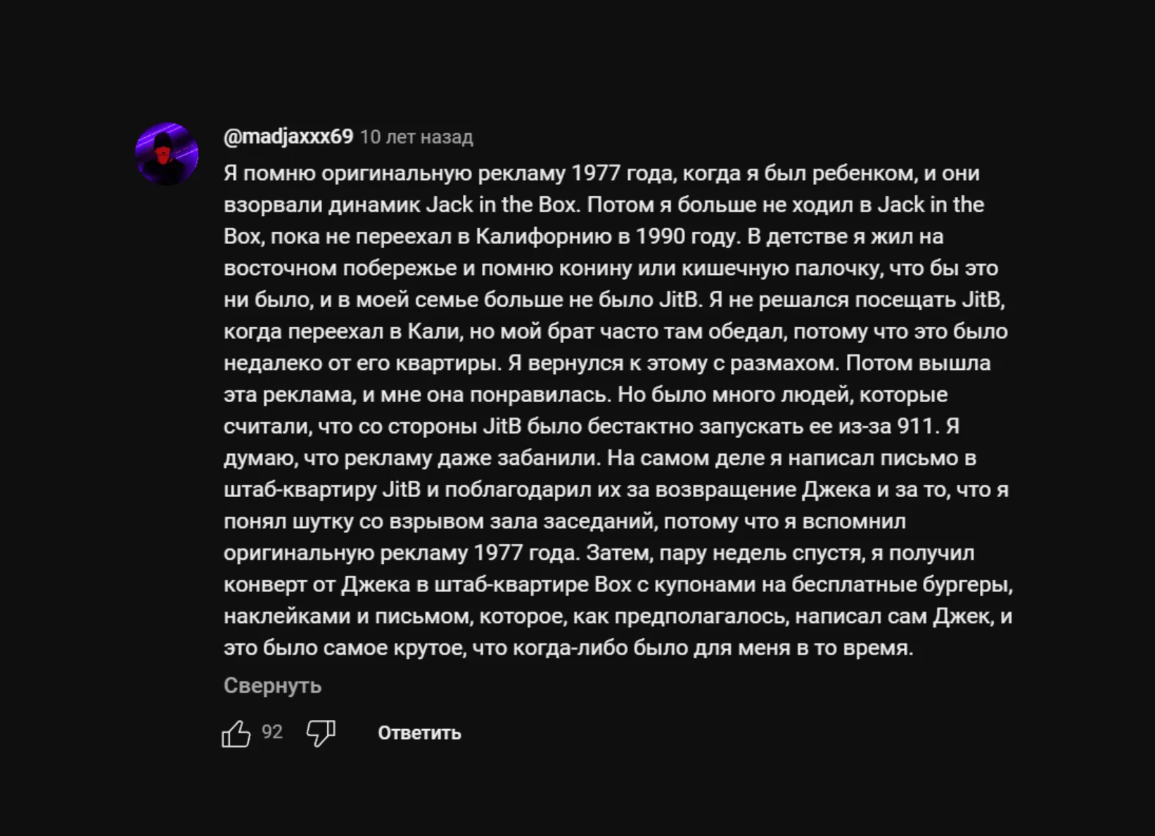 Коммент под роликом «Возвращение Джека»