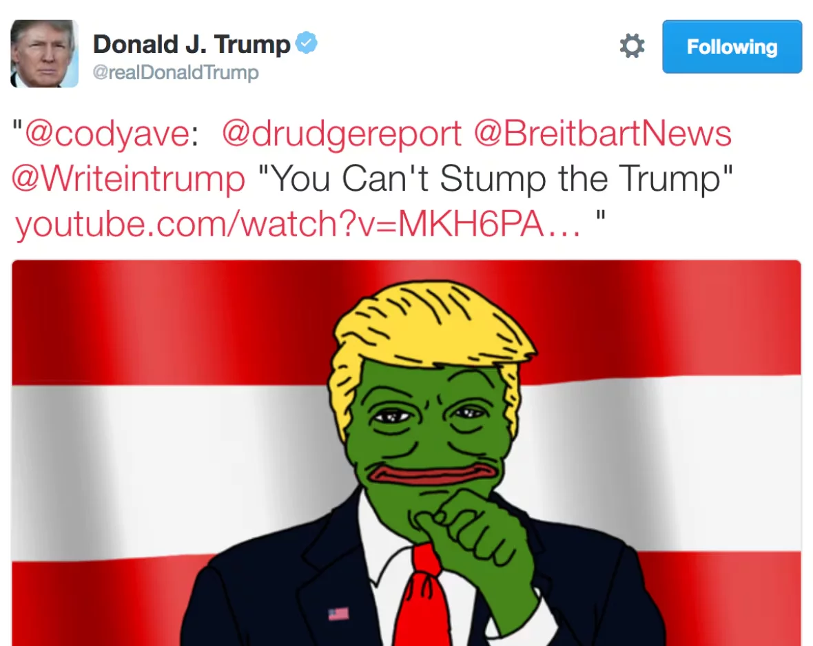 Мемами стало вообще всё: стена, «осушить болото», клички для оппонентов, причёска, You’re fired, даже его походка. Многие называли волну картинок с лягушкой Пепе «магией мемов, которая выиграла выборы». Звучит громко, но важно вот что: большая часть этого контента была органической. Фанаты сами делали мемы и подкармливали ими алгоритмы.