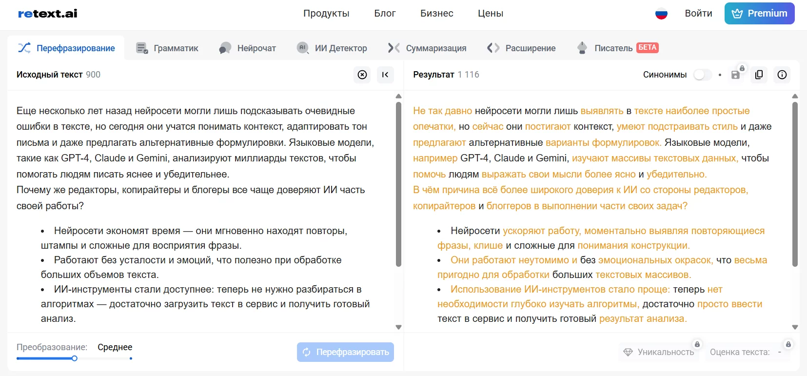 Нейросети для редактирования текста охватывают весь цикл работы — от технической проверки до творческой доработки.