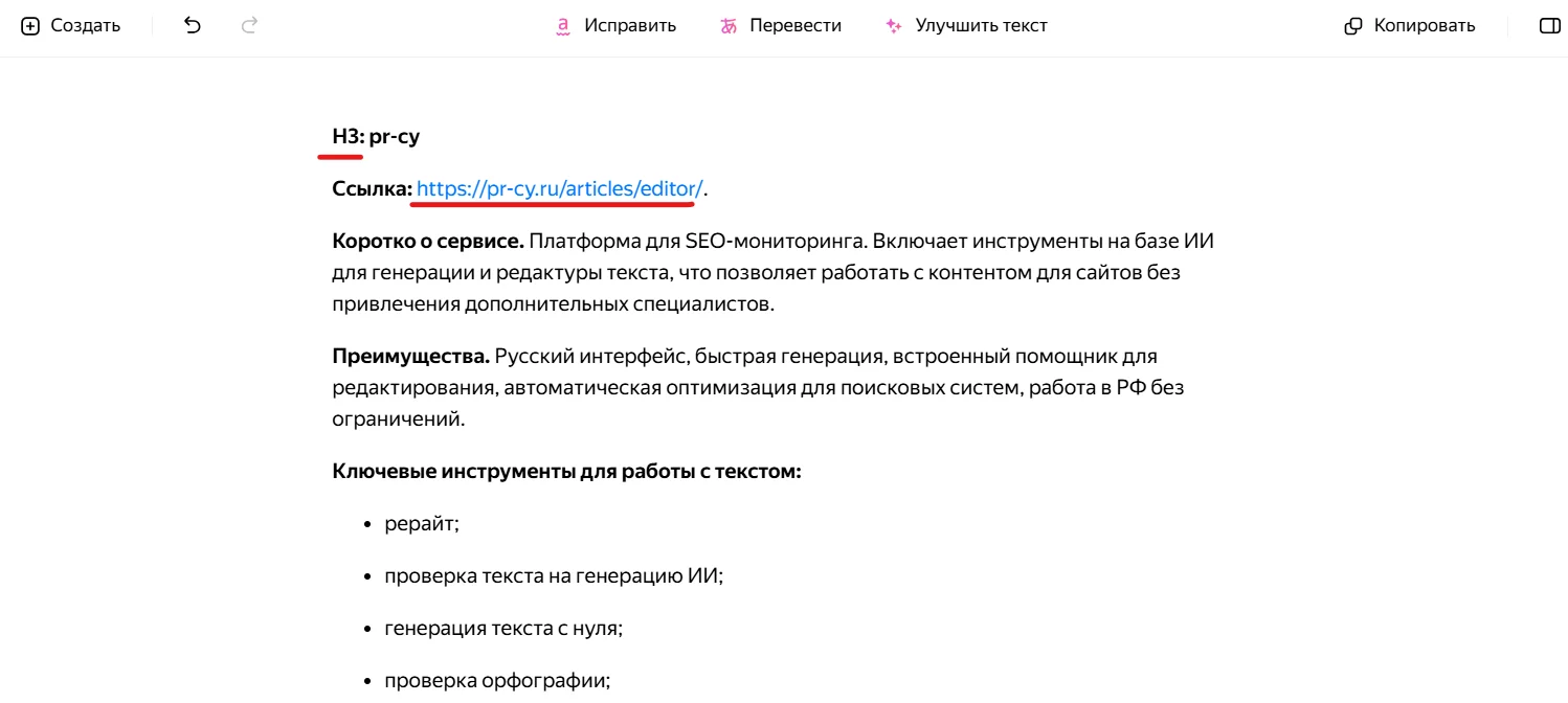 - Если нужна разовая или базовая проверка – подойдет условно-бесплатный сервис, например, ИИ-редактор Яндекса или pr-cy.