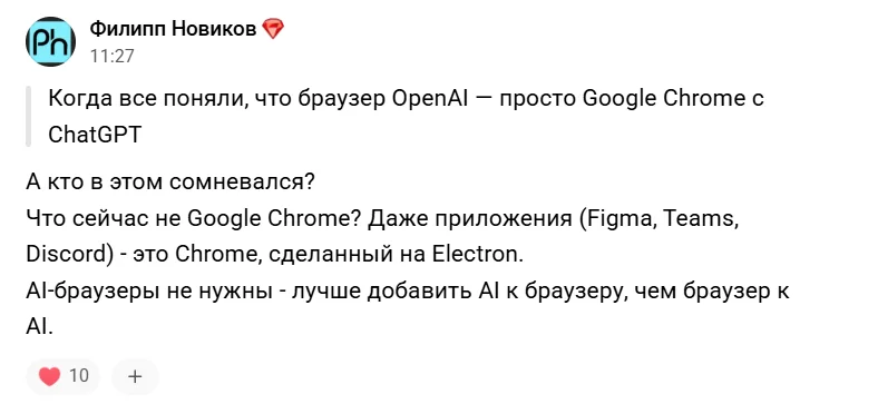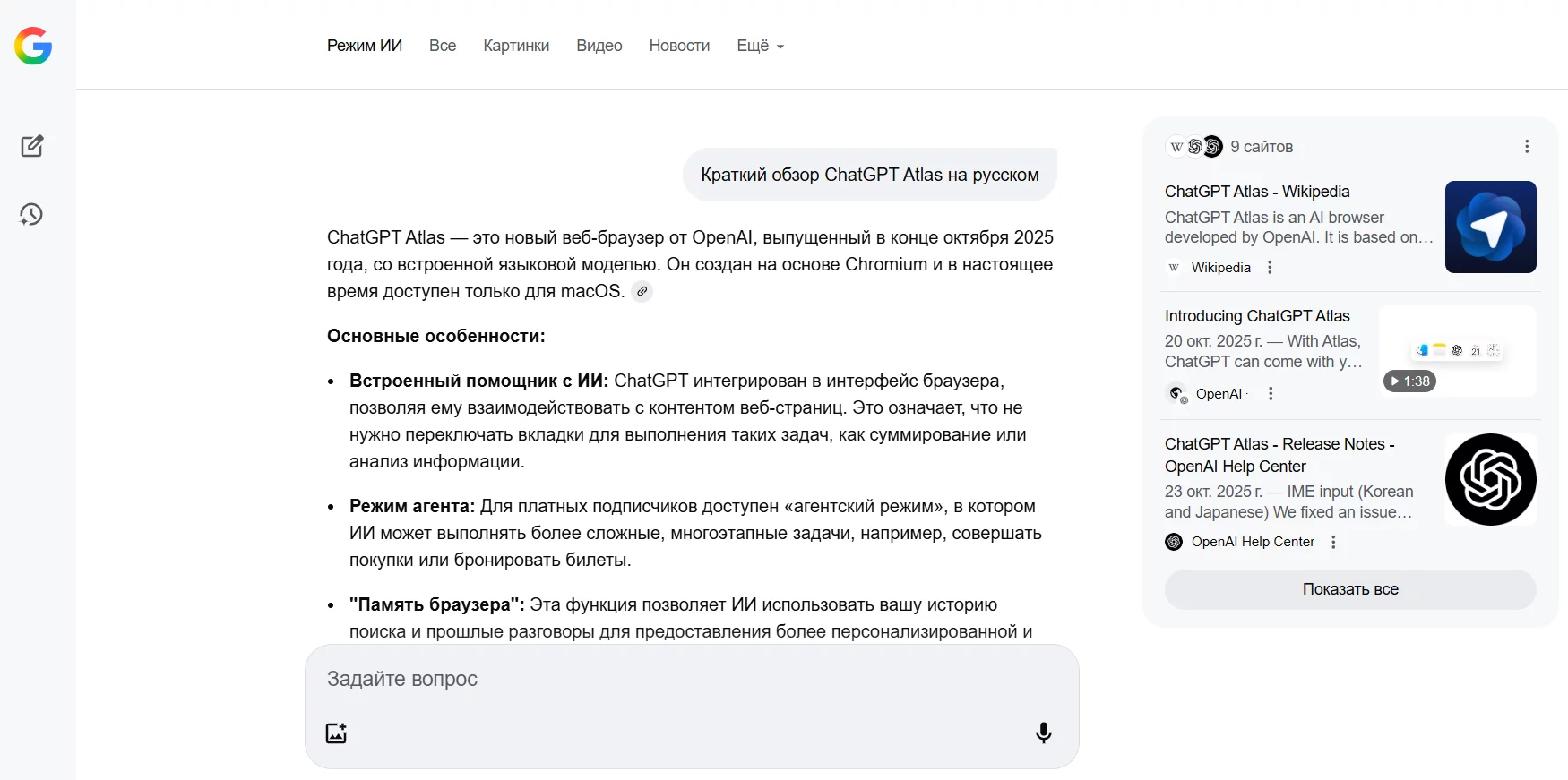 Atlas определенно подойдет тем, кто уже свободно использует ChatGPT и хочет оптимизировать этап переноса информации из браузера в чат с нейросетью. Остальным пользователям, особенно тем, кто еще не очень уверенно взаимодействует с нейросетями, возможно, проще будет использовать более доступные, простые и надежные альтернативы, такие как ИИ-режим в Google Chrome.