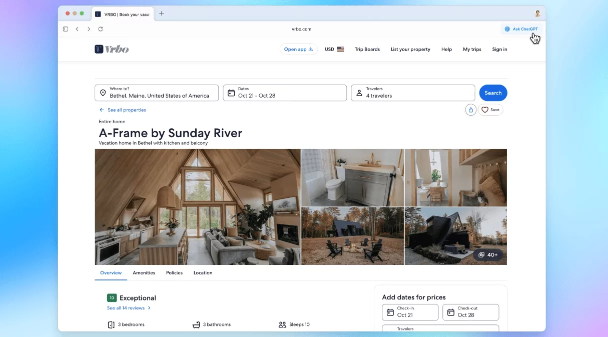 Браузер ChatGPT Atlas работает на основе Chromium (указано в официальных документах). Интерфейсом напоминает привычный Google Chrome, только с ChatGPT. По умолчанию окно диалога с ИИ заменяет собой обычную строку поиска, а стандартная выдача ссылок выступает как дополнительная функция.