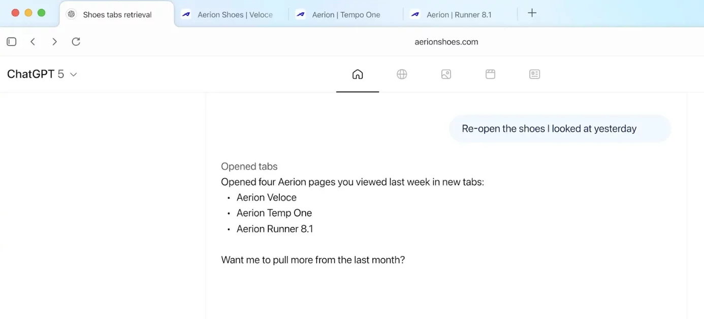 Браузер «помнит» вашу беседу. Вы можете задавать уточняющие вопросы без необходимости повторять всю предыдущую информацию. Спросив сначала «Какие тренды в веб-дизайне в 2025 году?», вы можете тут же добавить: «А какие из них подойдут для небольшого кафе?», и Atlas поймет контекст и даст релевантный ответ.