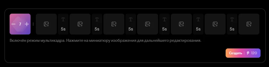 В режиме перехода можно загрузить от 2 до 7 изображений. Нейросеть сама придумает, как плавно перейти от одного к другому.