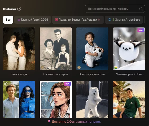 Шаблон — готовые сценарии для видео, где уже настроены движение, стиль и эффекты. Вам остаётся только загрузить своё изображение.