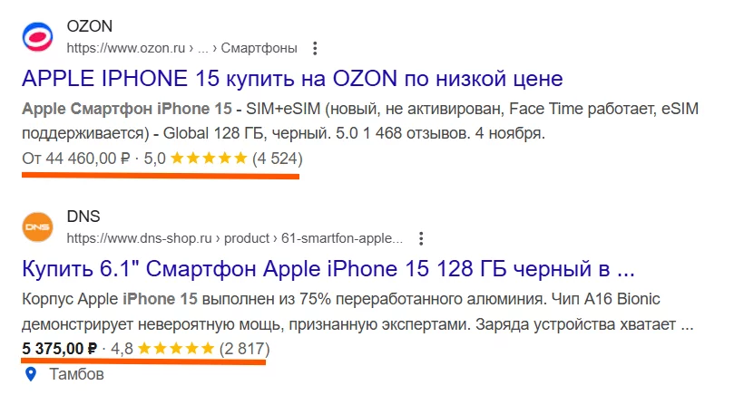 Это позволяет получать улучшенные сниппеты в поисковой выдаче — звездочки рейтинга, цену, наличие. Такой подход в SEO-продвижении привлекает больше кликов и резко повышает доверие.