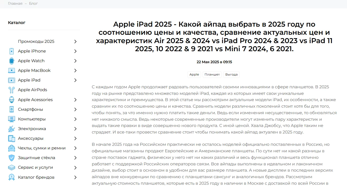 - Не только карточки товаров. Развивайте блог с статьями, гайдами, обзорами и сравнениями. Это работа с LSI-запросами (смежными темами) и захват всего клиентского пути.