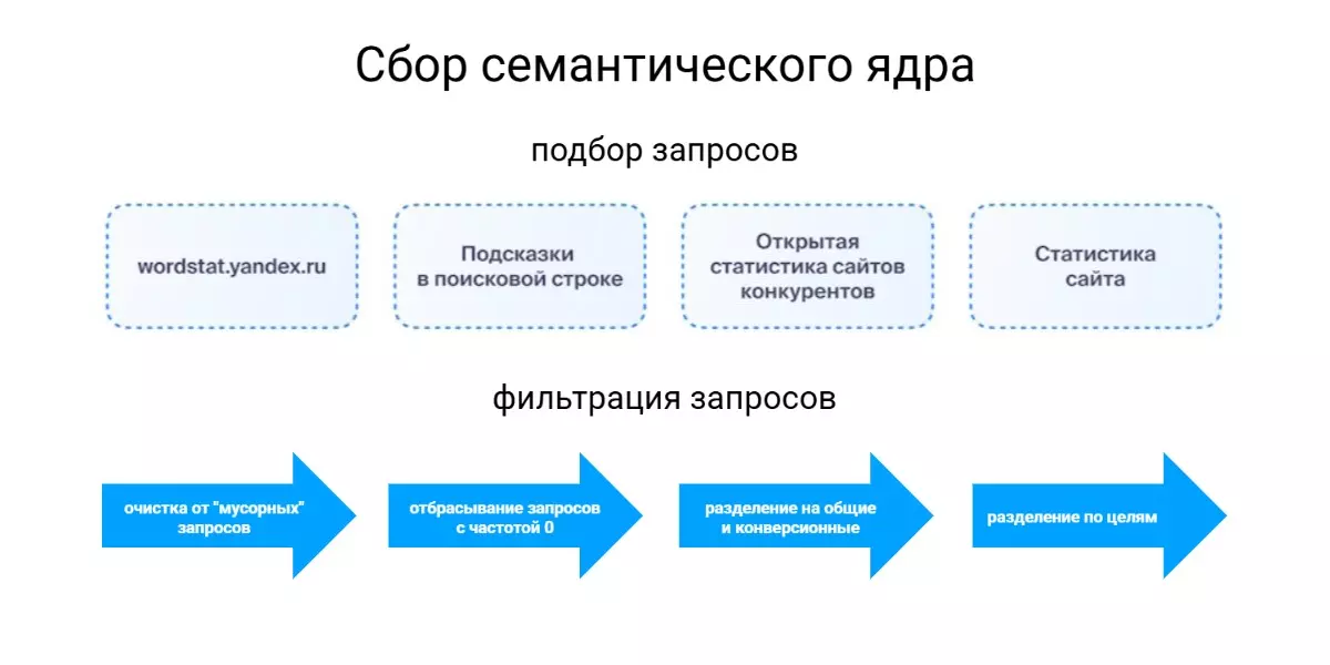 - Собрать семантическое ядро, разделив запросы по целям: