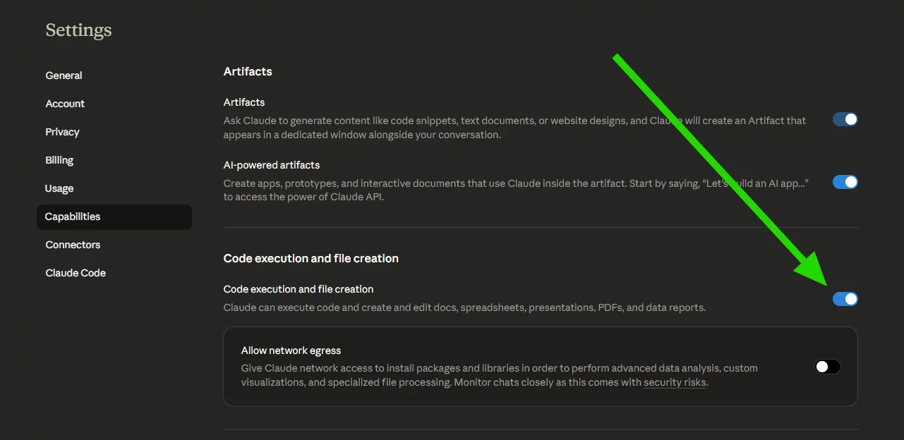 Skills доступны на всех тарифах Claude: Free, Pro, Max, Team и Enterprise. Да, даже на бесплатном тарифе можно включить примеры навыков и загрузить собственные — это прямо указано в официальной документации. Единственное обязательное условие — должна быть включена функция «Выполнение кода и создание файлов» (Code execution and file creation) в настройках.